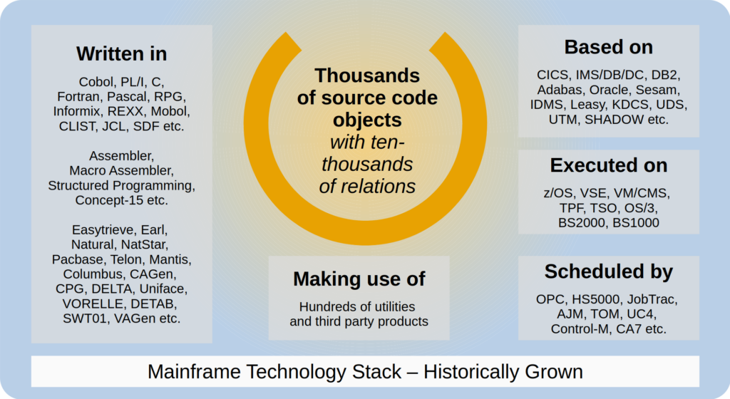 Mainframe-basierte Systeme haben meist eine lange Entstehungsgeschichte. Sie wurden kontinuierlich ausgebaut und verbessert. Spannende Technologien kamen hinzu, die neue fachliche Möglichkeiten eröffneten oder die Effizienz der Unternehmens-IT zu steigern.