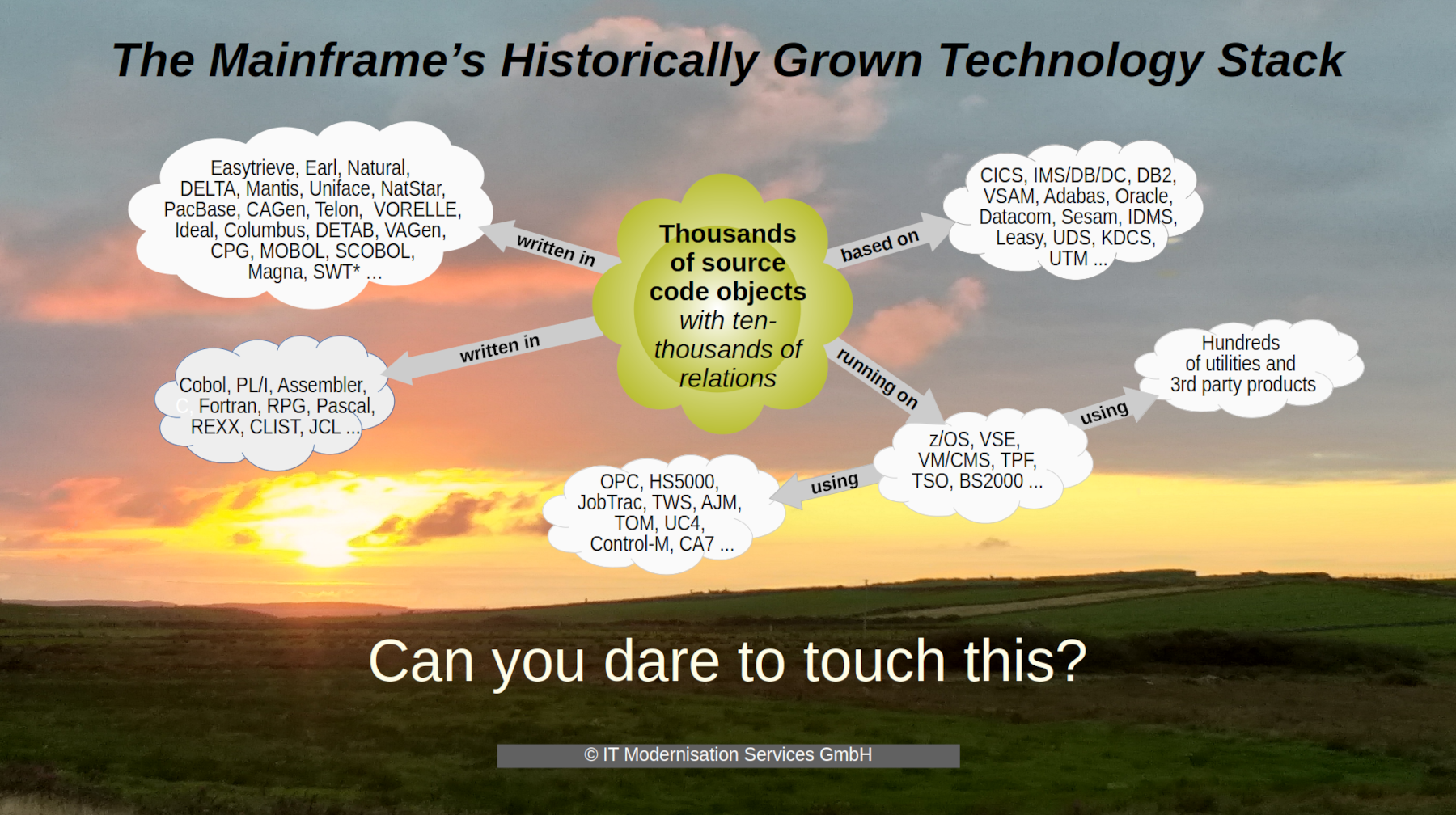 Mainframe-based systems usually have a long history of development. They have been continuously expanded and improved. Exciting technologies have emerged, opening up new business opportunities or increasing the efficiency of corporate IT.