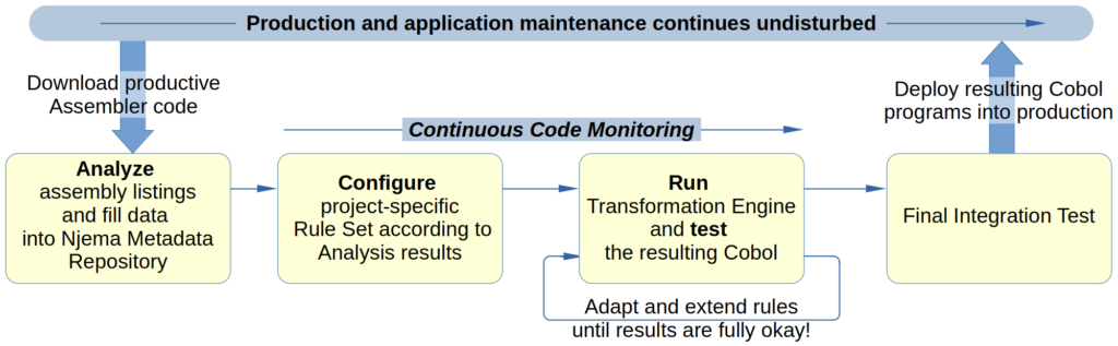 - After the last run, thetransformation engine has learned how to convert the entire assembler application into functionally identical Cobol: 100% automatically.